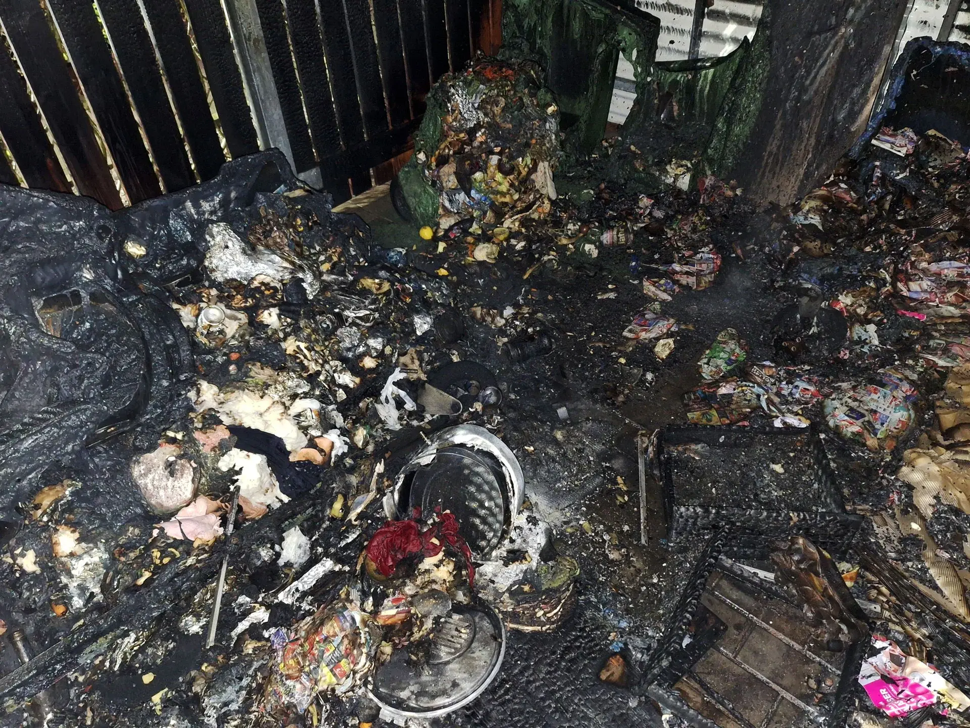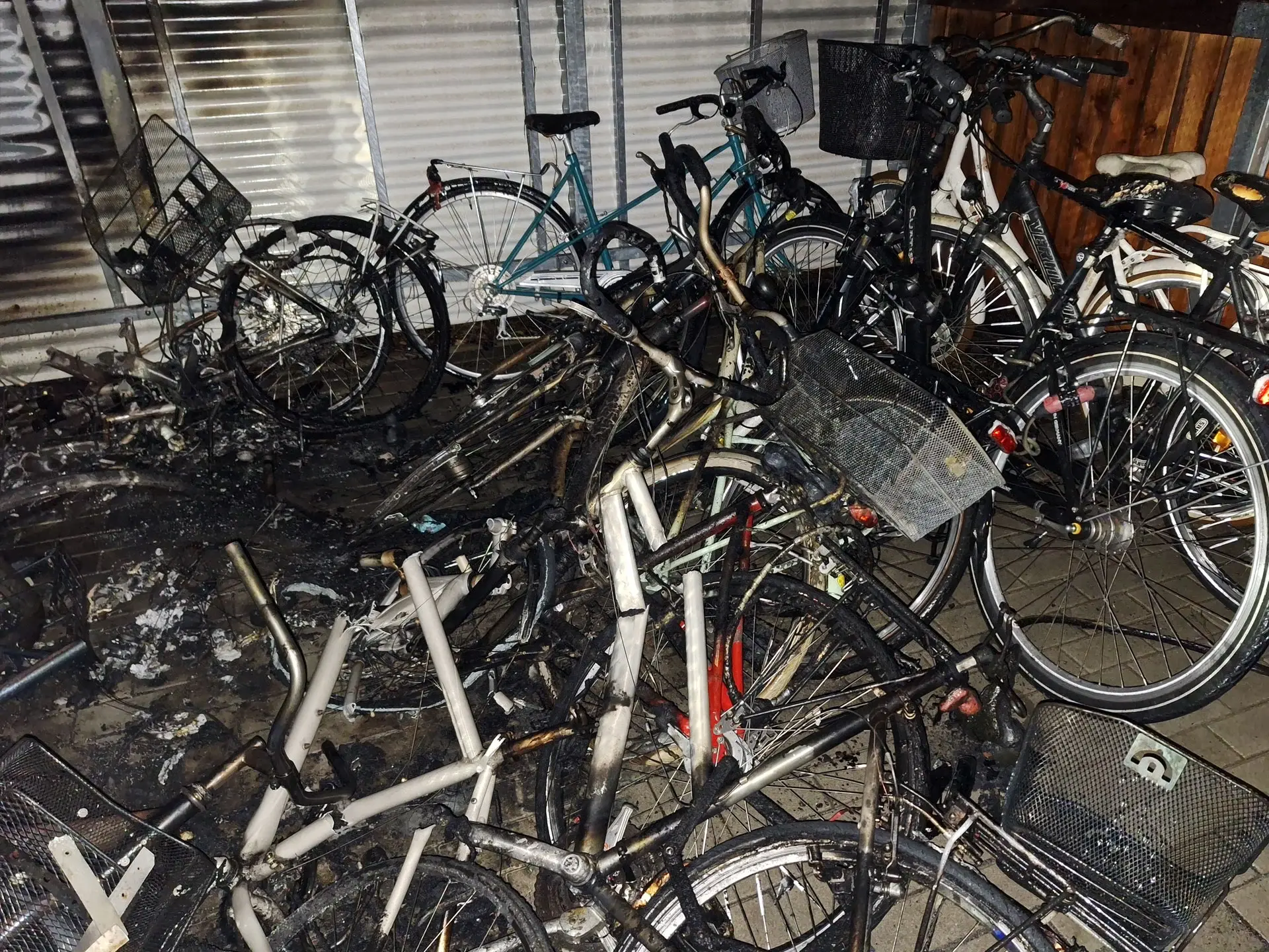 Die Brandausbreitung gestaltete sich als massiv, begleitet von einer Rauchgasdurchzündung. Die Intensität des Ereignisses führte dazu, dass mehrere Fahrräder durch die entstehenden Kräfte umgekippt wurden und teilweise erheblich beschädigt waren. In der Bilanz des Einsatzes verzeichneten die Feuerwehrleute vier große Kunststoff-Müllbehälter und zwei Mülltonnen, die vollständig niedergebrannt waren. Weiterhin wurden circa 15 Fahrräder zerstört, die teilweise nur noch als kleine, deformierte Reste zu erkennen waren. Auch der Unterstand, in welchem die Behälter lagerten, fiel dem Feuer komplett zum Opfer.