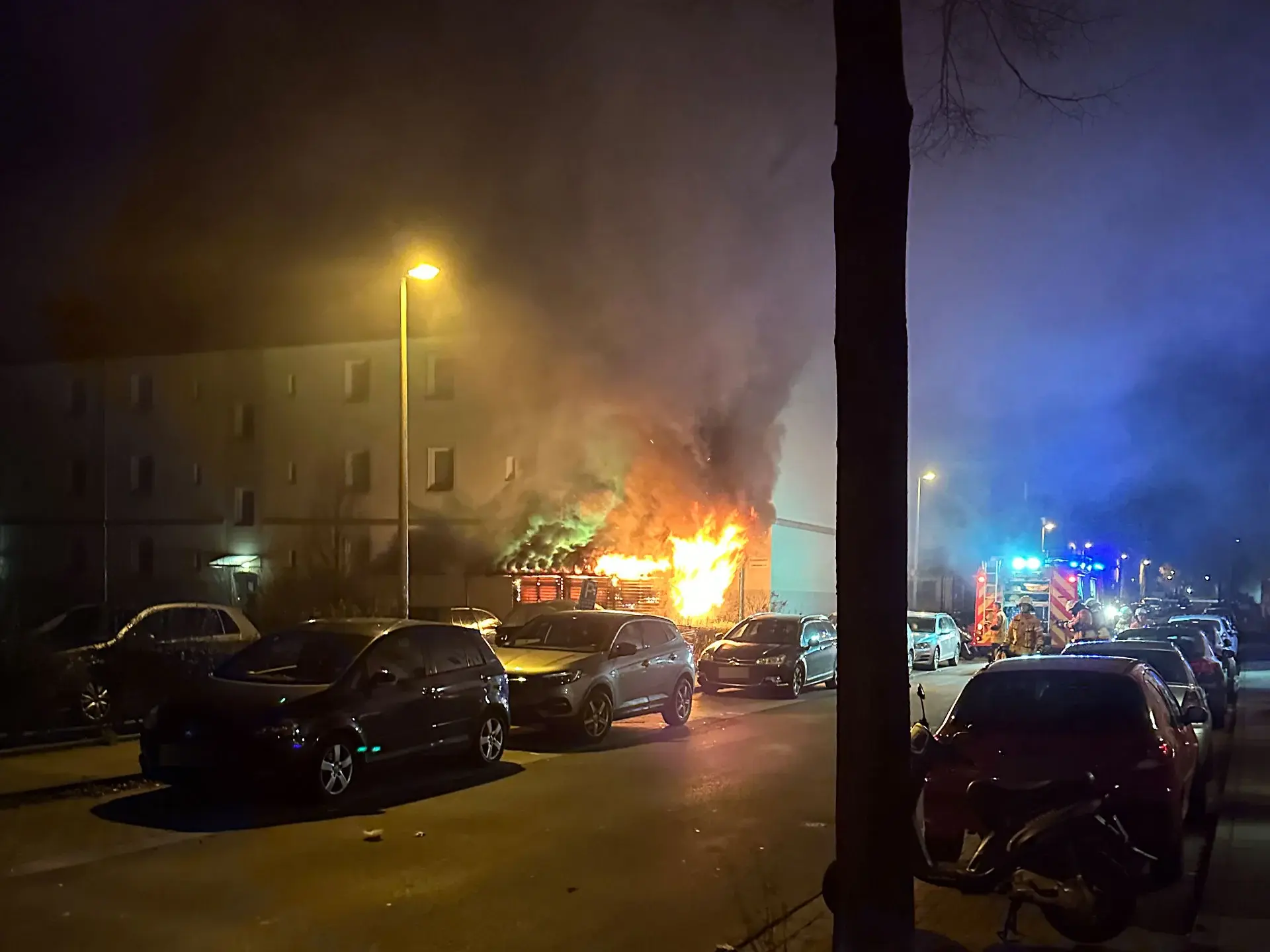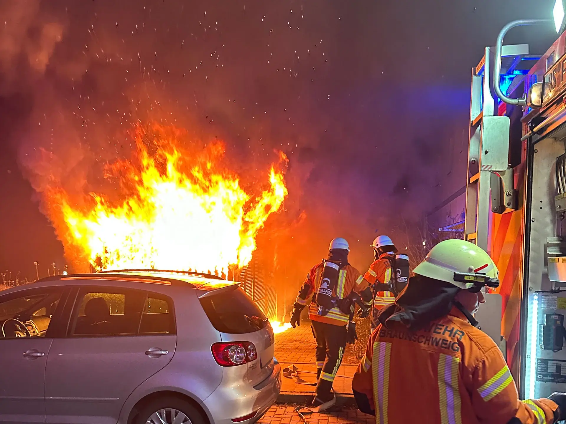 01. Januar 2024, 02:03 Uhr - Beim Eintreffen am gemeldeten Ort in der Kreuzkampstraße waren zunächst keine Anzeichen eines Feuers festzustellen. Eine weitere Erkundung führte die Feuerwehr etwa 300 Meter entfernt zu einer größeren Brandstelle. Dort standen mehrere Müllbehälter in einem Unterstand in Vollbrand. Umgehend wurde ein Löschangriff mit zwei C-Rohren von unterschiedlichen Seiten eingeleitet. Ziel war es, das Feuer effektiv einzudämmen und ein Übergreifen der Flammen auf nahe parkende Fahrzeuge zu verhindern.
