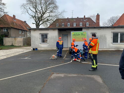 Während mit einem Teil der Jugendlichen in den vergangenen Wochen für die Jugendflamme I geübt wurde, befasste sich ein anderer Teil mit der Vorbereitung für die Stufe II.