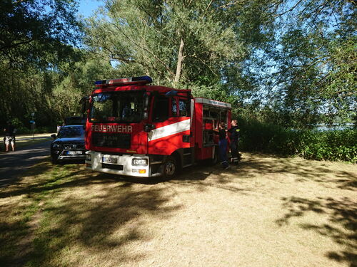Zeitgleich feierte der Ölpersee sein 40. Jubiläum und auch hier waren wir natürlich mit von der Partie. Bei herrlichem Wetter fuhr die zweite Gruppe am späten Mittag zum Ölpersee und baute dort die Spritzwand und Pylonen mit Tennisbällen auf. Viele Kinder versuchten sich an der Kübelspritze um die Fenster und Türen der Spritzwand zu öffnen. Zudem galt es mit der Kübelspritze die Tennisbälle von den Pylonen zu spritzen. Viele Besucher nutzen auch die Chance, sich unser TSF-W mal genauer anzusehen.
