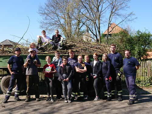 Um 09:00 Uhr trafen wir uns alle in Räuberzivil (normale Kleidung, die dreckig werden kann) am Feuerwehrhaus. Wir machten uns auf zum Sammeln in allen Ecken Ölpers. Wie jedes Jahr hatten einige Anwohner sich vorher bei der Feuerwehr gemeldet und Holzschnitt zur Abholung angemeldet.