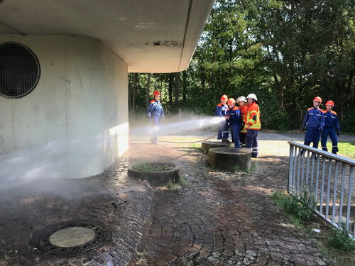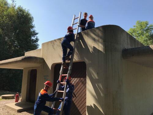 Dienstbeginn am Samstagmorgen war um 9:00 Uhr, wie schon in den vergangen Jahren stand zuerst die Einteilung der Gruppe auf die Fahrzeuge auf dem Plan sowie das Herrichten der Schlafmöglichkeiten im Gerätehaus. Im Anschluss begannen die Ausbildungsdienste am Gerätehaus wie Gerätekunde, Technische Hilfeleistung, Sport und Fahrzeugpflege. Zur Mittagszeit wurde gemeinsam gegrillt und abends wurden Eier gebraten. Die Ruhe während der Ausbildung und den Pausenzeiten wurde immer wieder durch diverse Ausbildungseinsätze unterbrochen.