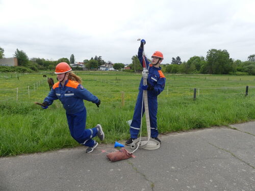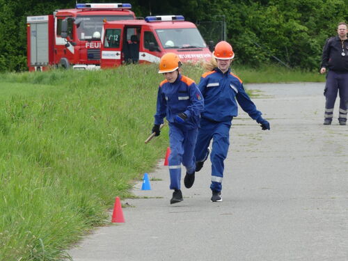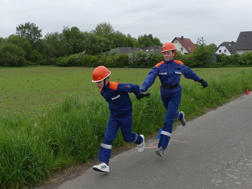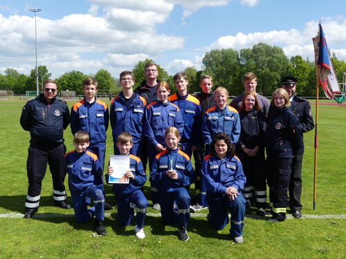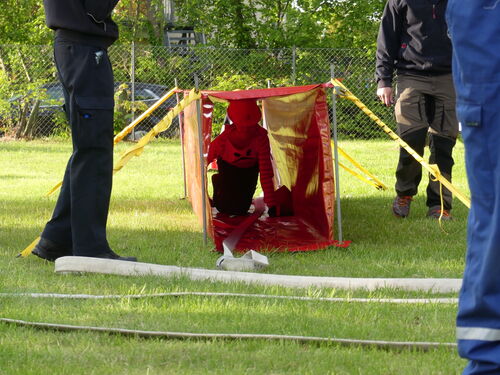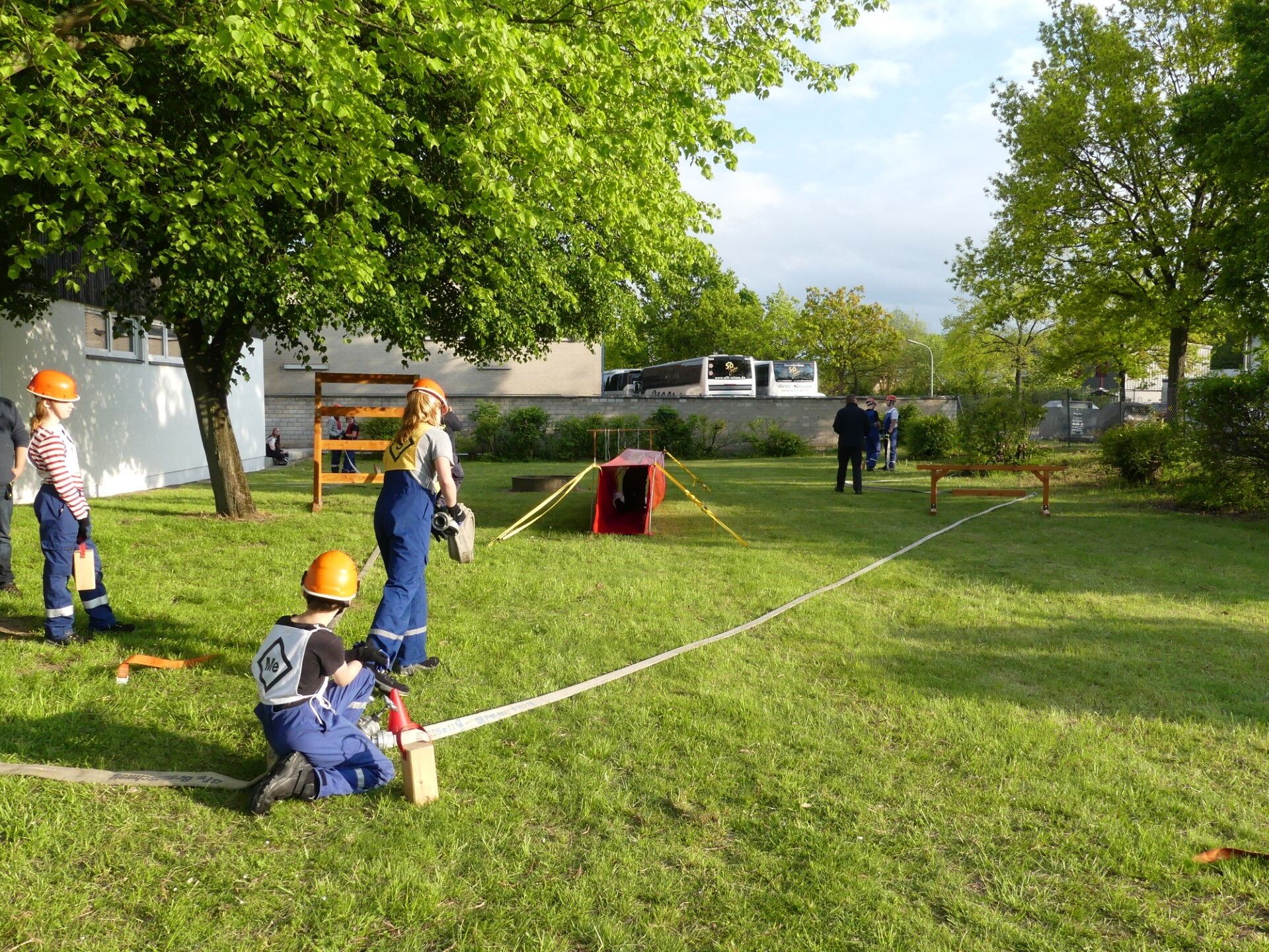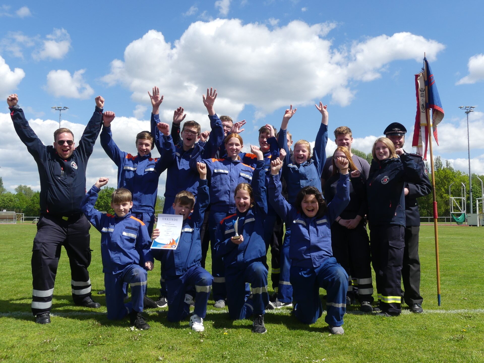 Nun war der große Tag gekommen: Sonntag. Wir machten uns früh auf in Richtung der Rüninger Sportanlage. Wir meldeten uns an und bauten unseren Stammplatz mit Pavillon und Bänken auf. Ölper begann mit dem A-Teil. Mit nur 5 Fehlerpunkten und einer sehr guten Zeit am Knotengestell gingen wir freudestrahlend zurück an unseren Platz. Nachdem wir auch den B-Teil in einer unglaublichen Zeit absolvierten, frühstückten wir gemeinsam und warteten auf die Siegerehrung. Gegen 13:30 Uhr stand es dann fest: Ölper hat mit 1393 Punkten den 3. Platz belegt und fährt damit zum Bezirkswettbewerb nach Hann. Münden. Diese Platzierung und eine Fahrt zum Bezirk hatte vorher noch nie eine Gruppe aus Ölper geschafft. Gestärkt durch diesen Erfolg und überglücklich fuhren wir zurück zum Feuerhwehrhaus und feierten bei einem Grillerchen mit den Eltern die Platzierung.