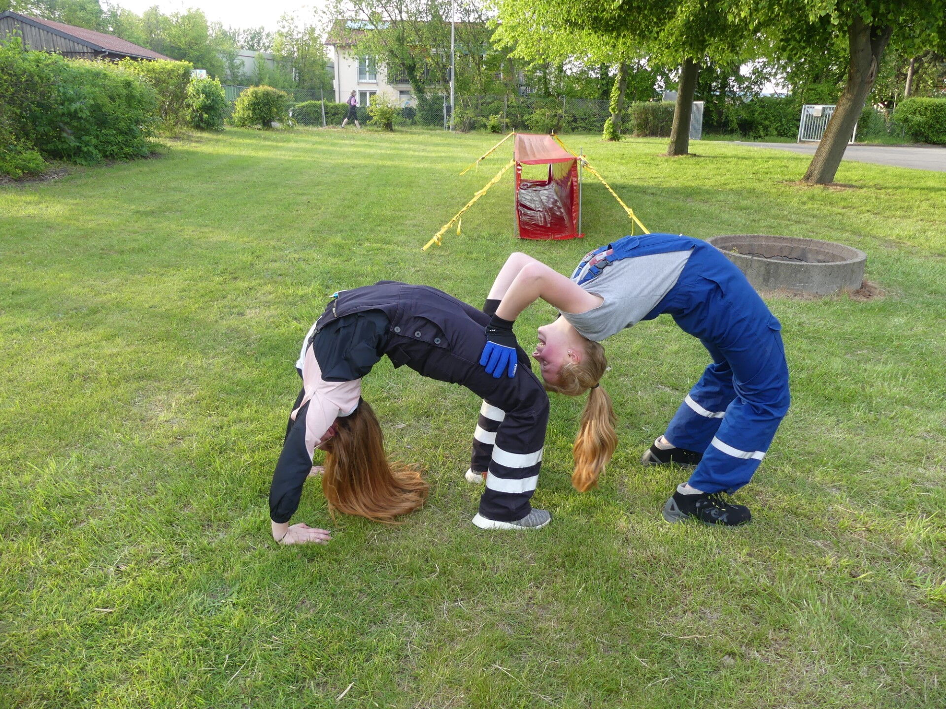 Samstag ging es nach dem Frühstück gleich weiter – dieses Mal mit dem B-Teil, einem Staffellauf mit mehreren Stationen. Nach dem Mittagessen (leckere Hot-Dogs!) trainierten wir erneut für den A-Teil. Nach dem Abendessen spielten wir erneut und gingen früh ins Bett, schließlich ging es am nächsten Tag früh raus!